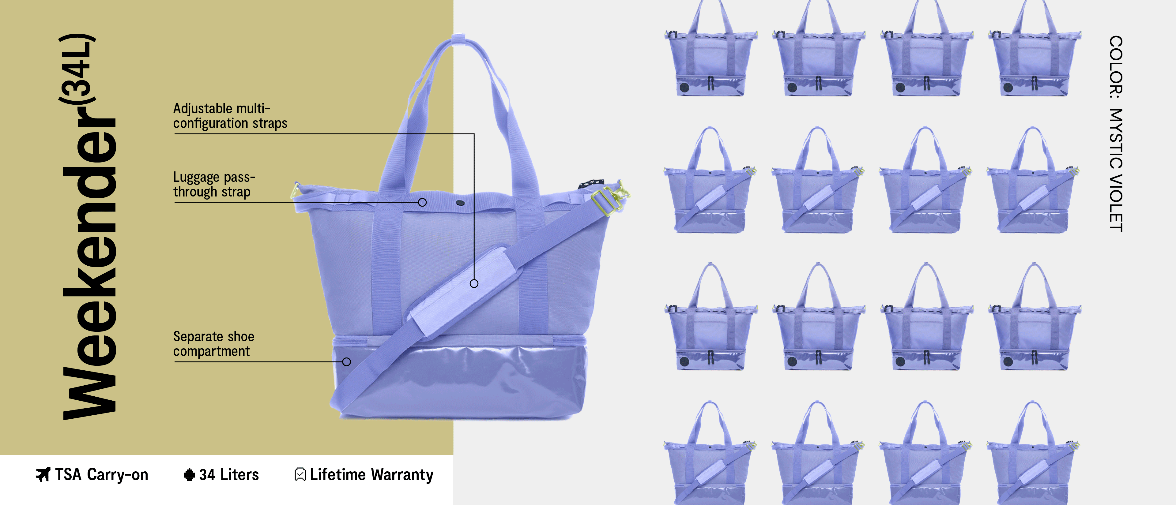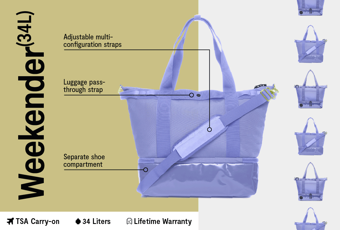Fits about 1–3 days worth of clothing and works as a personal item when flying (fits under the seat!).