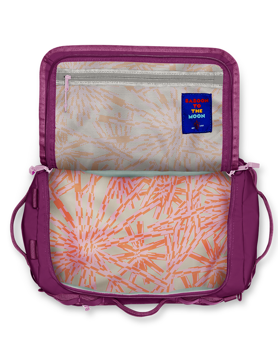 Fits about 1-3 days worth of clothing and if traveling by way of airplane, acts as a TSA approved personal item. It's lightweight and agile, yet just as strong as the bigger versions. Built for overnight adventures, road trips and beach hangs.